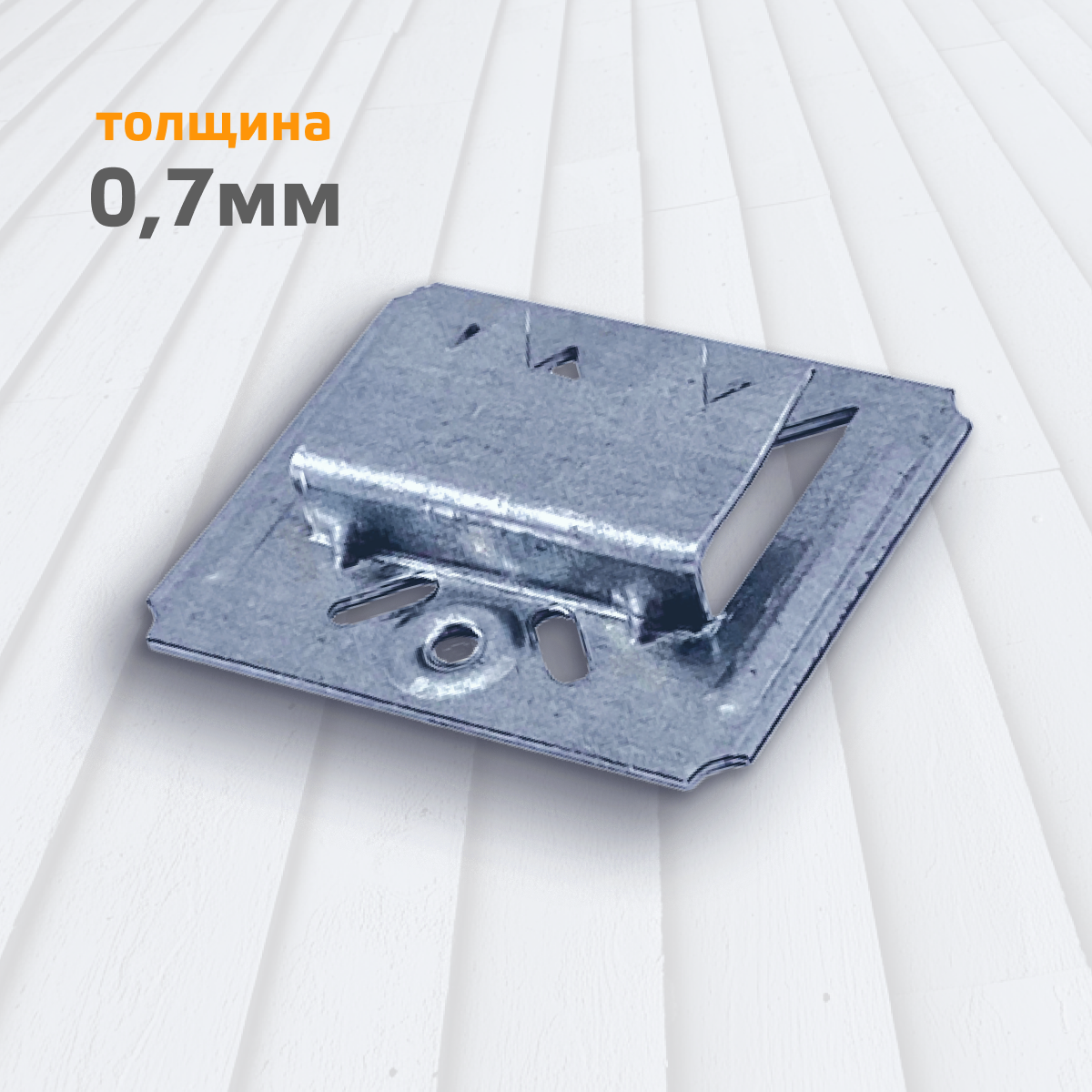 Скрытое крепление для монтажа вагонки без повреждения её планок. Несущая способность увеличена за счёт двух ребер жёсткости.